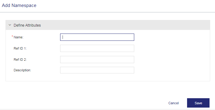 | Name | Name of the namespace. The validity of the namespace name depends on the enforcement in use. | Required |