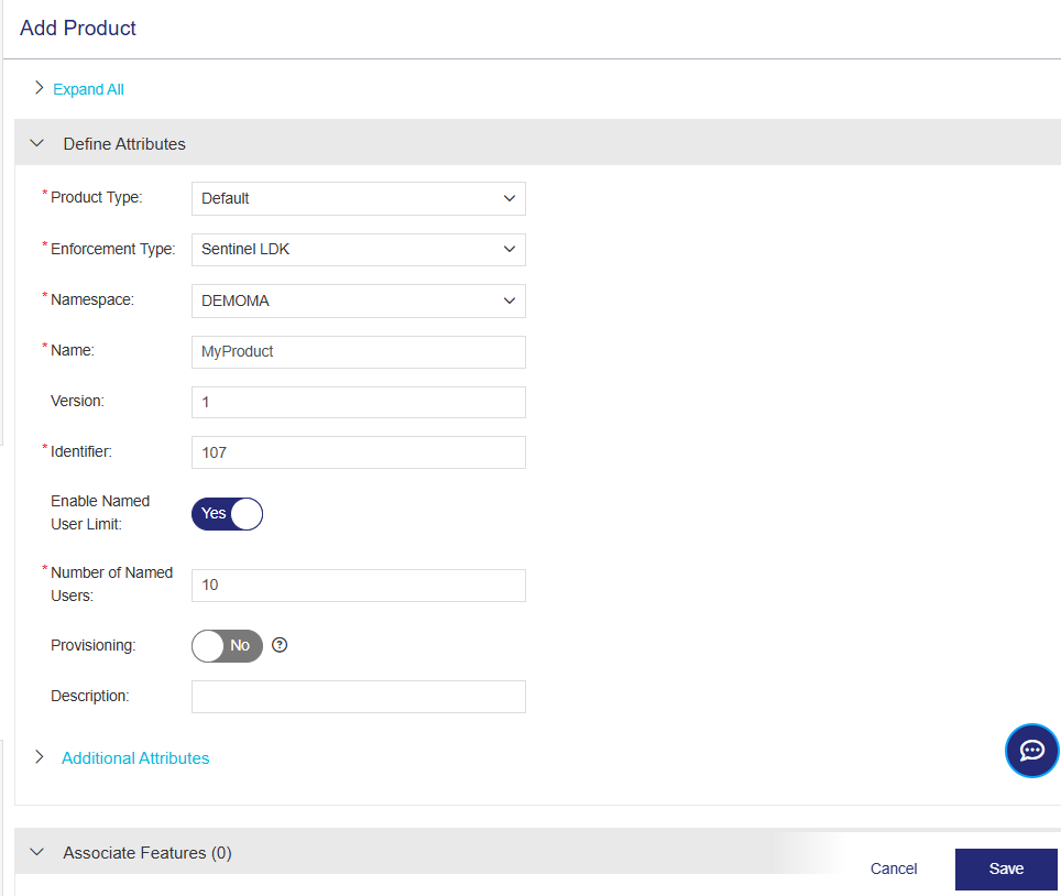 >To view product attributes such as Named User Limit and Number of Named Users after completing the entitlement, expand the entitlement, and then expand the relevant product and select the Product Attributes tab.